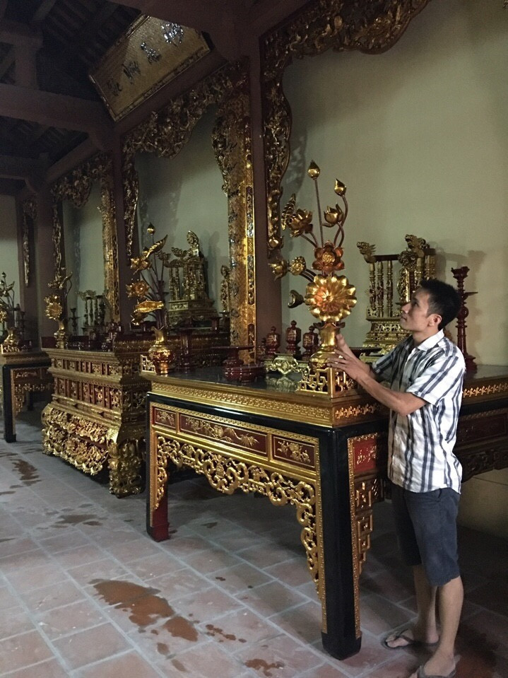 Cơ sở Nguyễn Hững không chỉ có được nguồn gỗ sản xuất đồ thờ chất lượng, mà họ còn có cả đội ngũ thợ tài tình không những trong nghề sơn mà còn nghề tạc gỗ, tạo ra những bức tượng đặc sắc như ông Hoàng Bảy, Ông Hoàng Mười, Phật Thích Ca, Phật A Di Đà, Phật bà nghìn mắt nghìn tay, ô sa, cửa võng, linh vật phong thủy, .... Đặc biệt đồ thờ Nguyễn Hưng chuyên về hai dòng sản phẩm thờ đó là Sập thờ và Hoành phi câu đối. Hai sản phẩm này theo anh Hưng cho biết có rất nhiều đơn đặt hàng, vì sản phẩm làm ra khách hàng rất hài lòng, giá cả lại không quá đắt đỏ nên được khách thương lại giới thiệu người quen tới ủng hộ.